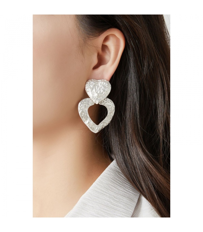 Voeg deze prachtige hartvormige oorclips met gehamerd motief toe aan je sieradencollectie en ervaar de tijdloze elegantie die ze bieden.