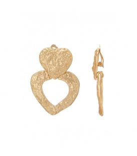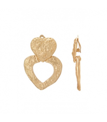 Deze goudkleurige oorclips in hartvorm met een gehamerd motief voegen een verfijnde en modieuze uitstraling toe aan je look. Het gehamerde patroon creëert een unieke textuur die het licht subtiel vangt, waardoor deze oorclips een opvallend accessoire zijn voor zowel dagelijkse outfits als speciale gelegenheden.