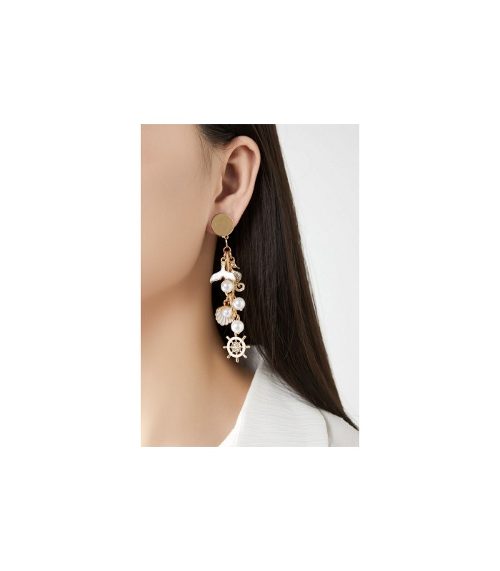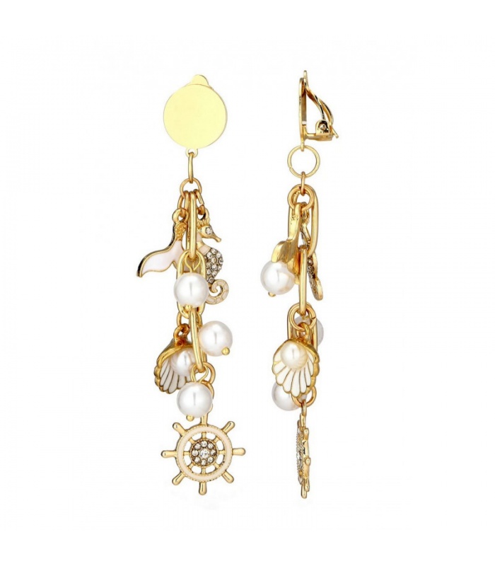 Wat maakt deze oorclips onweerstaanbaar? De mix van goudkleurige details, parels en maritieme bedels zoals een zeepaardje en schelp. Perfect bij een modieuze outfit of als opvallend accent bij een basic top.
