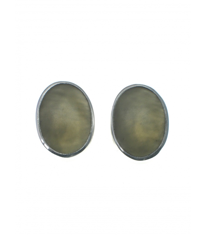 Culture Mix grijze ovale oorclips met zilverkleurige rand.