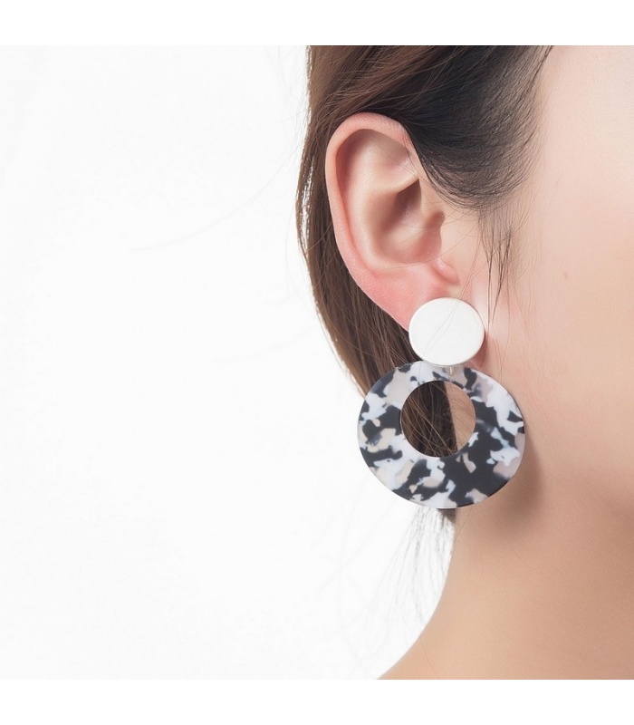 Als u op zoek bent naar een stijlvolle en comfortabele oorclip, dan is deze grijs zwarte ronde hanger van acryl een uitstekende keuze. Voeg hem toe aan uw winkelwagen vandaag nog en geef uw outfit een elegante touch met deze mooie accessoire.