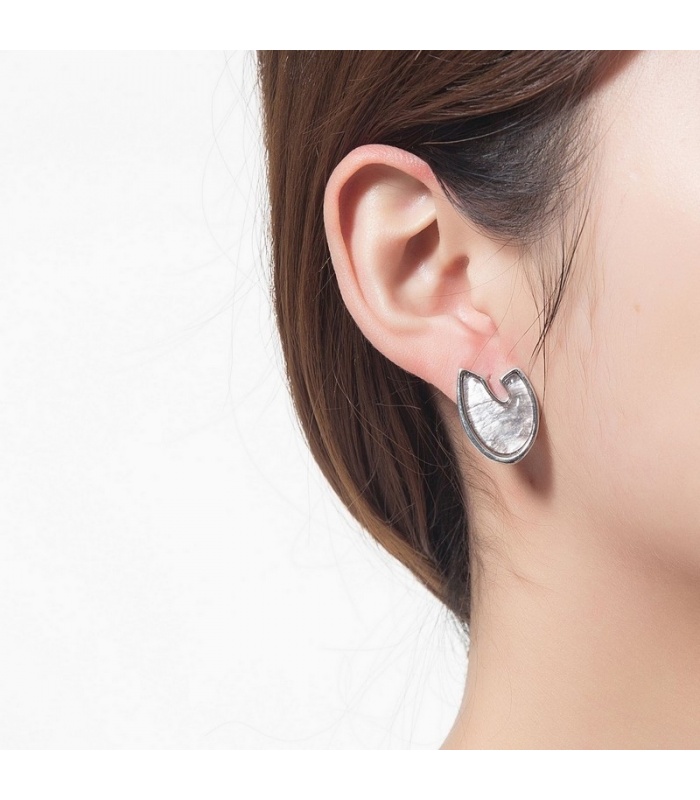 Mooie grijze oorclips met een zilverkleurige rand