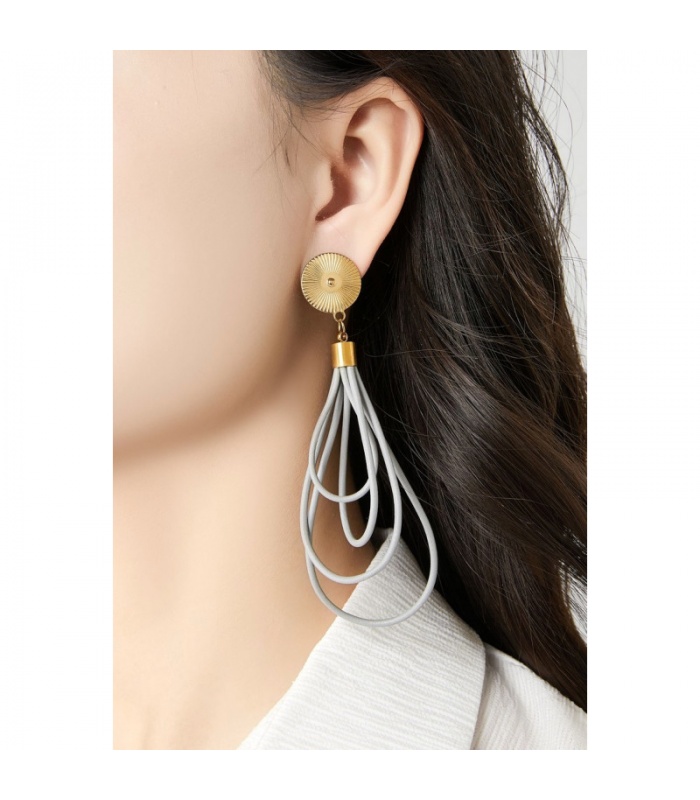 Wil je lengte en beweging zonder klassiek te ogen? Deze oorclips combineren goudkleurige details met grijze lussen in een vloeiend, modern ontwerp. Het resultaat is een lichte, speelse oorbel met een opvallend silhouet en eigentijdse uitstraling.
