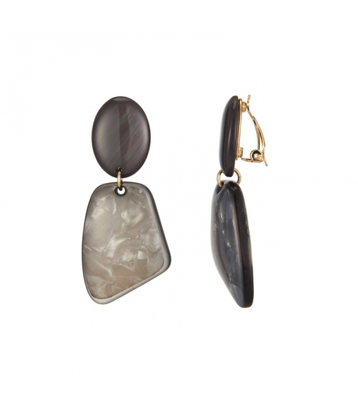 Prachtige Grijze Oorclips met Motief in de Hanger