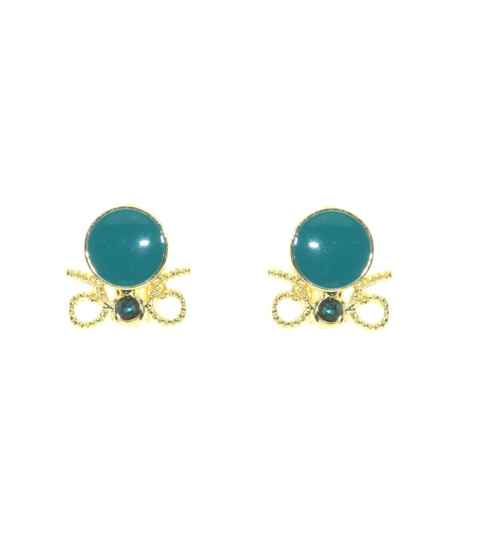 Deze groene oorclips zijn voorzien van elegante goudkleurige strikjes, wat zorgt voor een verfijnde en modieuze uitstraling. Het contrasterende kleurenschema maakt deze oorbellen tot een opvallend accessoire dat zowel bij casual als formele outfits past.