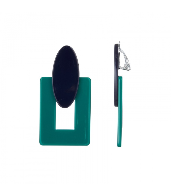 Groene rechthoekige oorclips met een zwart ovaal oorstukje