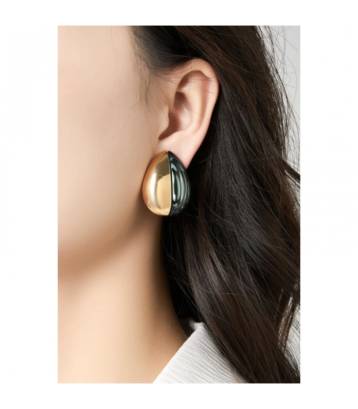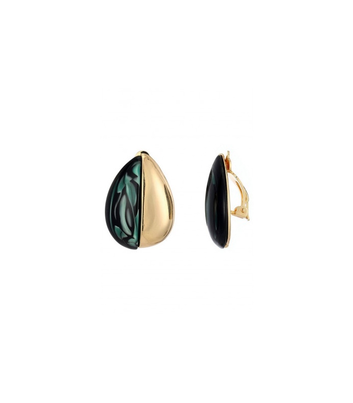 Hoe combineer je subtiele elegantie met een opvallende twist? Deze oorclips doen precies dat. De glanzende goudkleurige helft contrasteert perfect met het diepe zwart en donkergroene motief. Ideaal voor een chique look met karakter. Door de organische druppelvorm voegen deze oorbellen een moderne flair toe aan elke outfit.