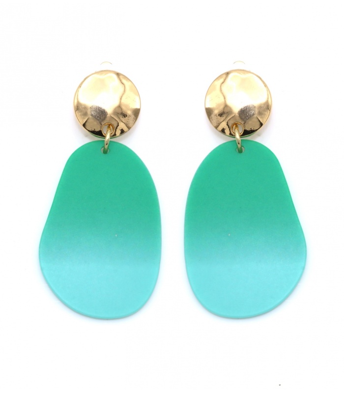 Oorclips met een hanger die overloopt van licht naar donkergroen. Deze oorbellen combineren natuurlijke tinten met een stijlvolle uitstraling. Het kleurverloop in de hanger voegt een uniek detail toe aan je look.