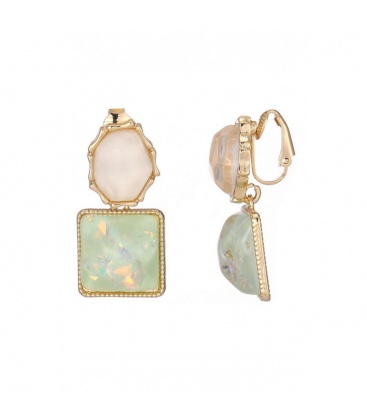 Oorclips met groene en witte harsinleg in een goudkleurige setting bieden een elegante en frisse uitstraling. De combinatie van groene en witte tinten met de warme gloed van goud maakt deze oorbellen tot een veelzijdig accessoire. Deze oorclips zijn ideaal voor wie geen gaatjes heeft en toch stijlvolle oorbellen wil dragen.
