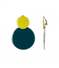Vierkante oorclips met groene inleg in goudkleurige zetting van Belle Miss.