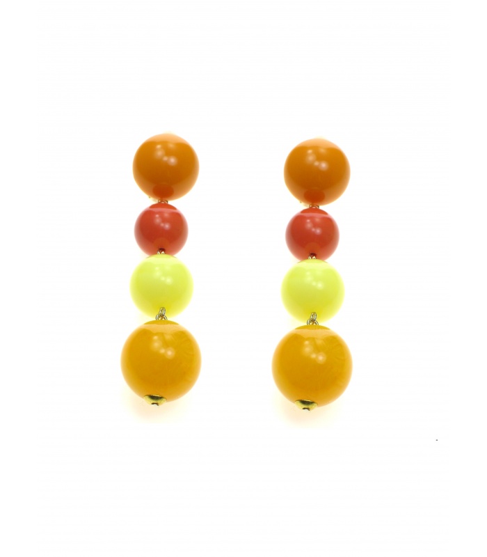 Voeg een sprankje energie toe aan je look met de oranje gekleurde kralen oorclips met een effen oranje oorstukje van Francine Bramli.