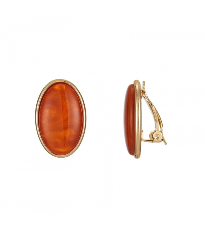 Oranje getinte ovale oorclips met een goudkleurige rand
