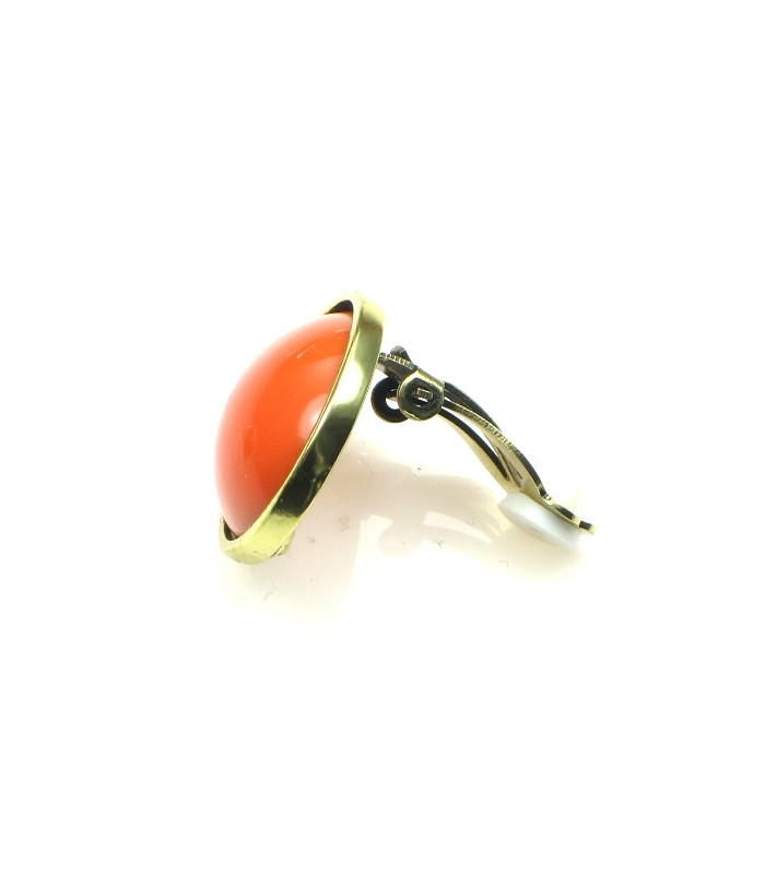 Oranje oorclips met goudkleurige rand. Diameter van de oorclip is 2,2 cm.