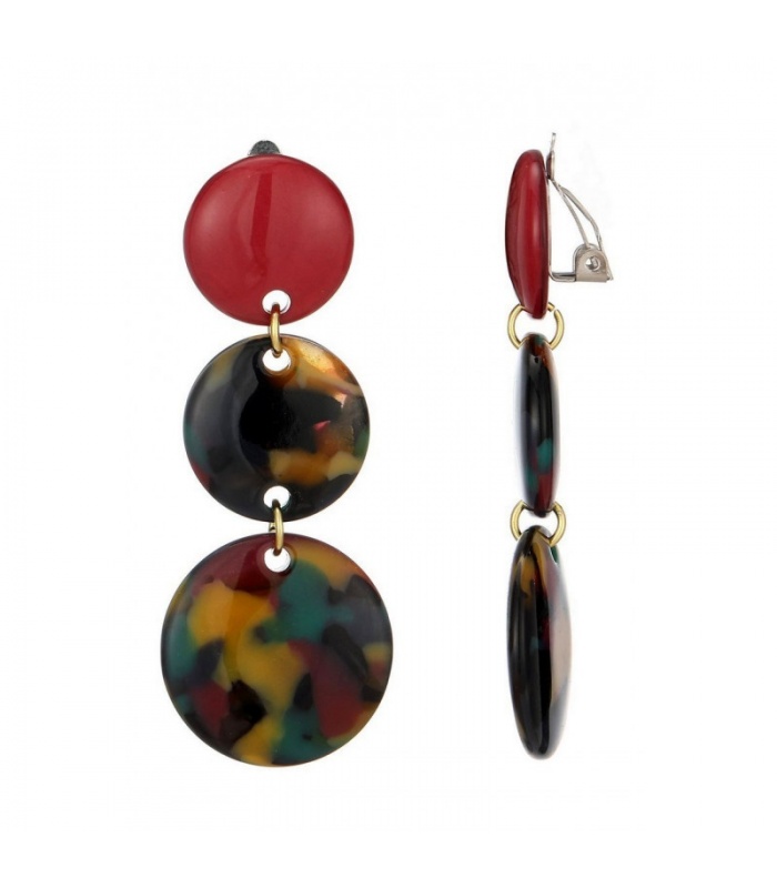 Op zoek naar oorclips die echt karakter tonen? Deze speelse oorclips bestaan uit drie ronde schijven, verbonden in een soepel vallend ontwerp. De mix van effen rood met gekleurd motief zorgt voor een trendy uitstraling met een eigentijdse twist.
