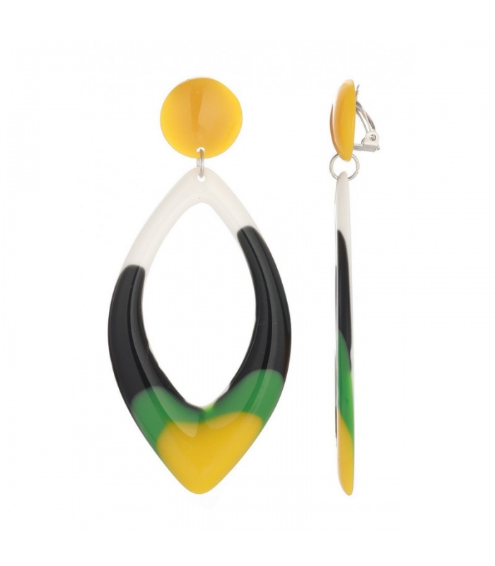 Oorclips met een kleurrijke gele ovalen hanger. Sierlijk accent in je fashion collectie. Deze oorclips voegen speelsheid toe aan je outfit. Ze zijn comfortabel nikkelvrij en ideaal voor oren zonder gaatjes. De zachte rubbertjes zorgen dat ze de hele dag blijven zitten.