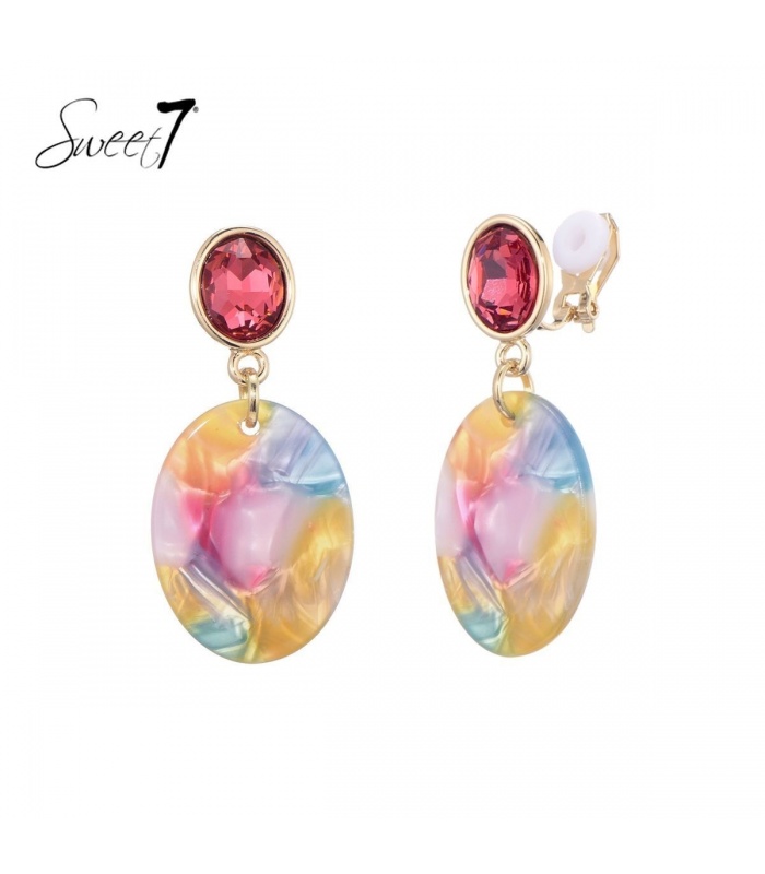 Gekleurde oorclips met een roze glas...