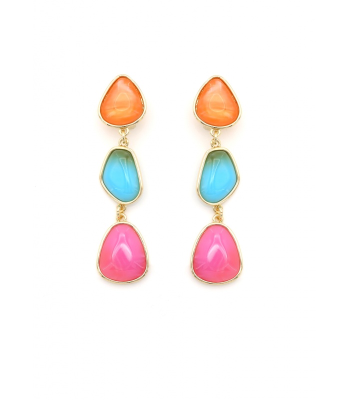 Op zoek naar oorclips die je outfit direct laten opvallen? Deze speelse oorclips combineren fuchsia, turquoise en oranje in een stijlvolle gouden omlijsting. De opvallende kleuren zorgen voor een frisse, vrolijke look die perfect past bij elke fashion-forward styling.