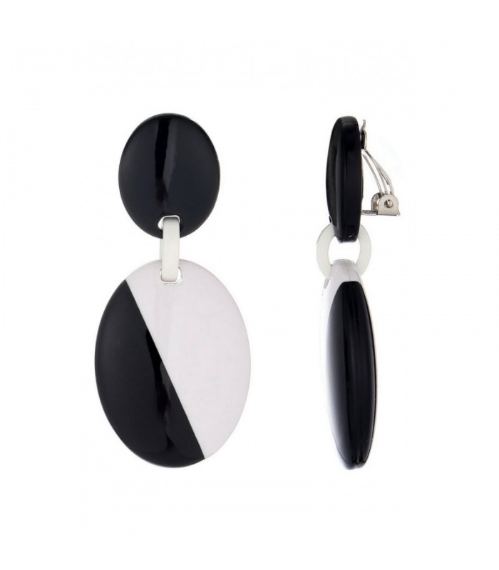 Wil je een stijlvolle eyecatcher zonder gaatjes? Deze oorclip in zwart, wit kleurblokkering speelt met contrast en vorm. De ovale elementen geven een retro chique uitstraling die moeiteloos opvalt. Een perfect statement voor wie houdt van grafisch design.
