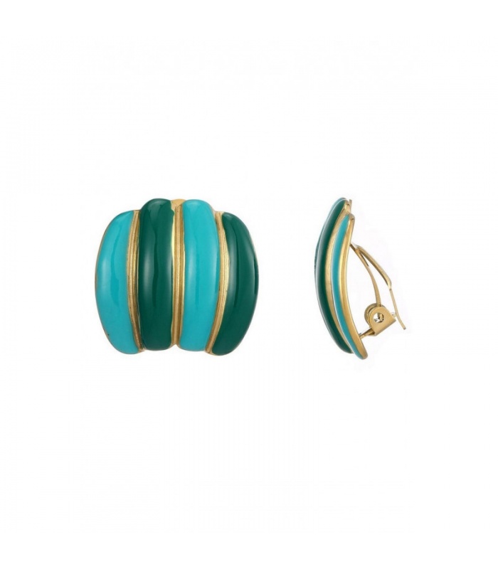 Turquoise oorclips met groene glans: verfijnde glamour met goudkleurige strepen geven een luxe touch. Sieraden als deze combineren boho chic met moderne fashionlooks. Oorbellen met mintgroene accenten maken elke look frisser. Deze oorbel is stijlvol en elegant.