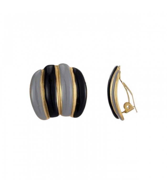 Oorclips passen perfect bij zowel casual als chique looks. Deze grijs‑zwarte oorclips hebben subtiele goudkleurige strepen voor een stijlvolle touch. Ideaal als fashion statement in jouw sieradencollectie.