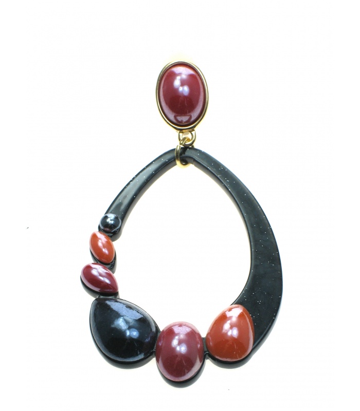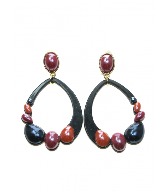 Prachtige Zwarte Oorclips met Gekleurde Stenen