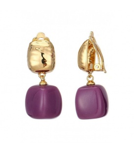 Paarse oorclips met een hars hanger. De lengte van deze oorclip is circa 5,5 cm. Deze klemoorbellen zijn geschikt voor oren zonder gaatjes. De clip oorbellen zijn nikkelvrij. Voorzien van rubbertjes voor het comfortabel dragen van deze oorclips.