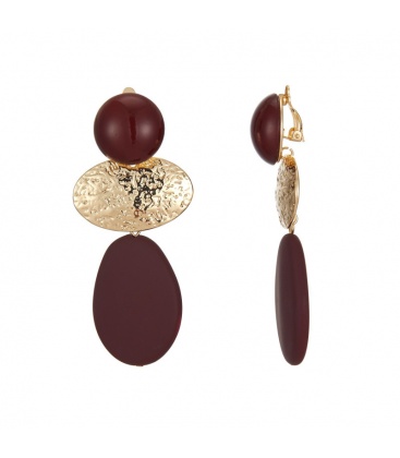 Bordeaux rode oorclips met een goudkleurige ovaal element