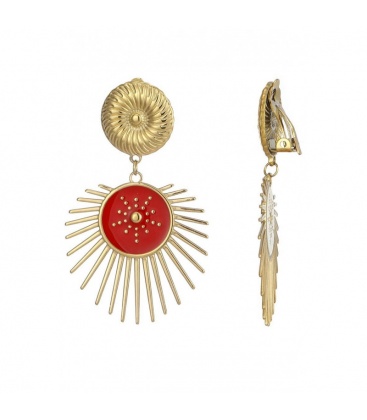 Het zonnemotief geeft deze oorbellen een symbolische uitstraling. De warme kleur rood staat voor passie en energie, terwijl de goudkleur voor luxe en elegantie zorgt. Ideaal voor wie houdt van uitgesproken sieraden. De clips zijn comfortabel, zelfs zonder gaatjes.