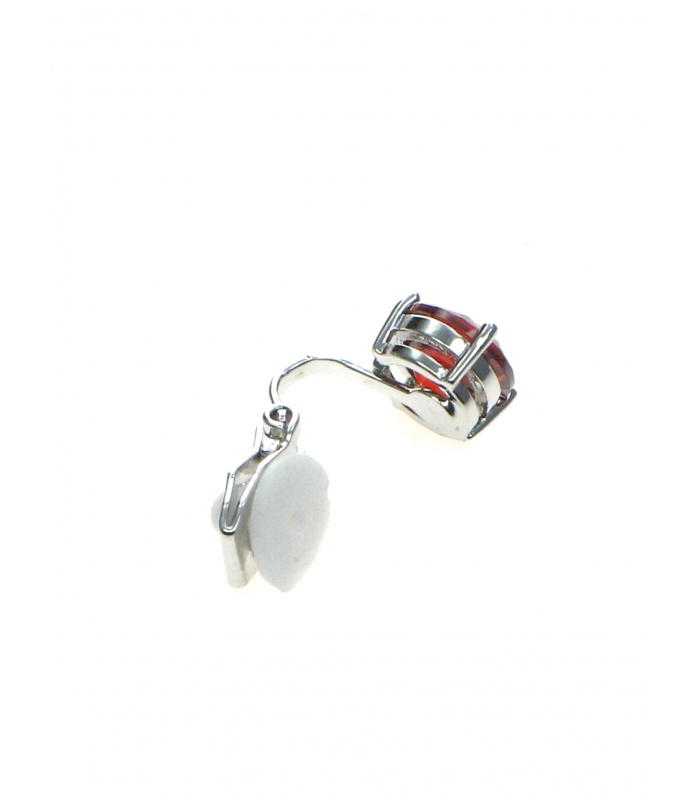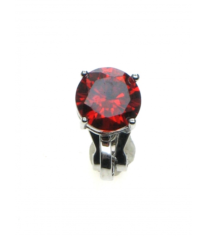 Oorclips met helder rode Zirconia strass steen in zilverkleurige zetting