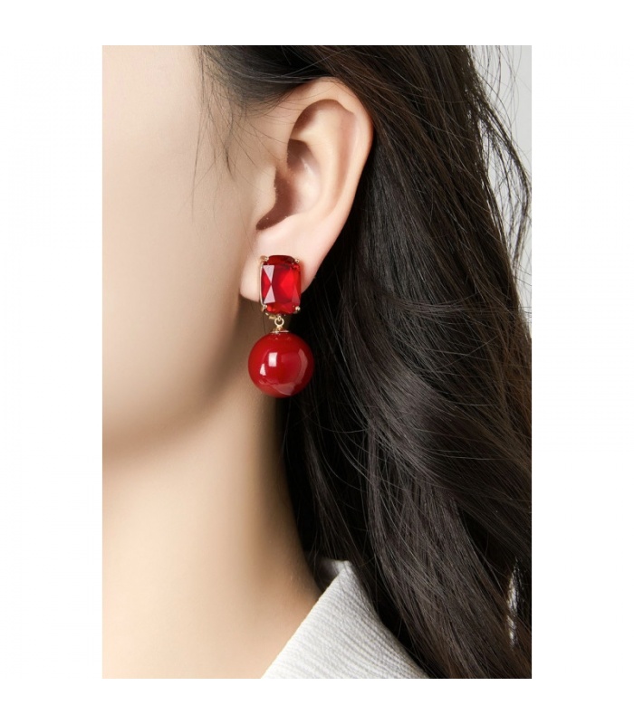 Wat maakt deze oorclips zo opvallend? De combinatie van een diepe rode steen bovenaan en een glanzende, ronde hanger zorgt direct voor een krachtige uitstraling. Deze oorbellen trekken de aandacht zonder te overdrijven. Perfect voor avondlooks of een opvallend accent overdag.