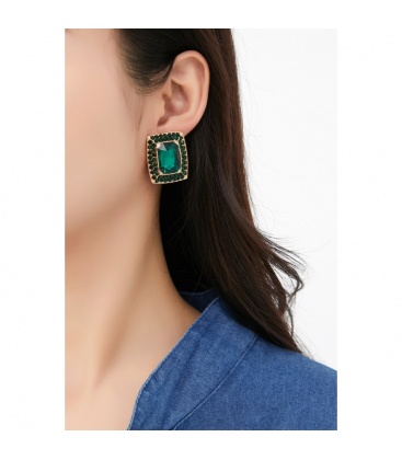 Deze opvallende rode oorclips zijn voorzien van twee rijen sprankelende glassteentjes, wat zorgt voor een extra luxe uitstraling. De grote rode steen in het midden trekt meteen de aandacht, terwijl de dubbele rand van glassteentjes de oorclips een glamoureuze en elegante afwerking geeft.