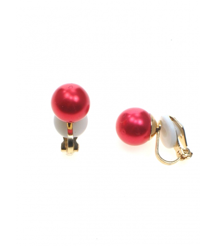 Rode kunst parel oorclips.