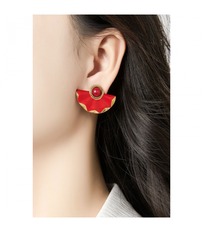 Oorclips met waaier motief brengen een stijlvolle flair naar je look. De diepe rode kleur en het elegante waaierdesign maken deze oorbellen tot een opvallend accessoire. Ze passen perfect bij zowel casual als chique outfits en zijn ideaal voor wie geen gaatjes heeft. De comfortabele clip zorgt ervoor dat je ze moeiteloos de hele dag draagt.