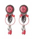Rood paarse oorclips met print en een strass stenen rand om de hanger