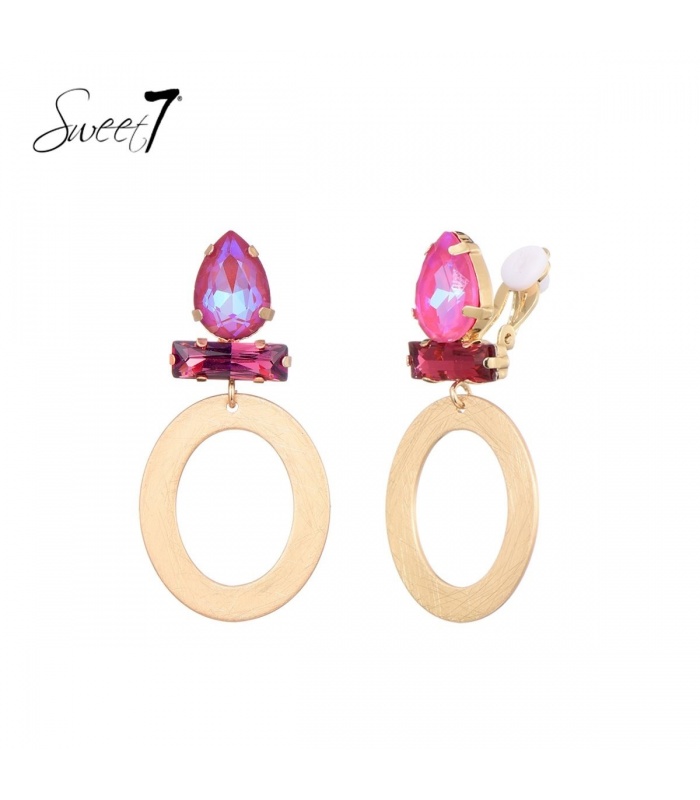 Deze oorclips zijn met aandacht voor detail ontworpen en hebben een oogverblindend patroon van roze glas steentjes die subtiel schitteren bij elke beweging. De goudkleurige basis voegt een luxe element toe aan het geheel.