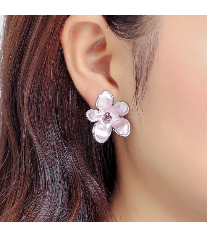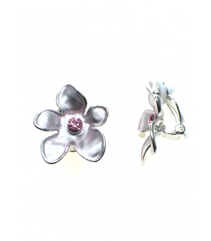Roze Bloemvormige Oorclips met Stras Steentje.