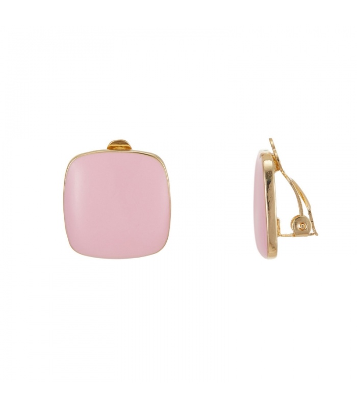 Roze vierkante oorclips in goudkleurige zetting van Belle Miss.