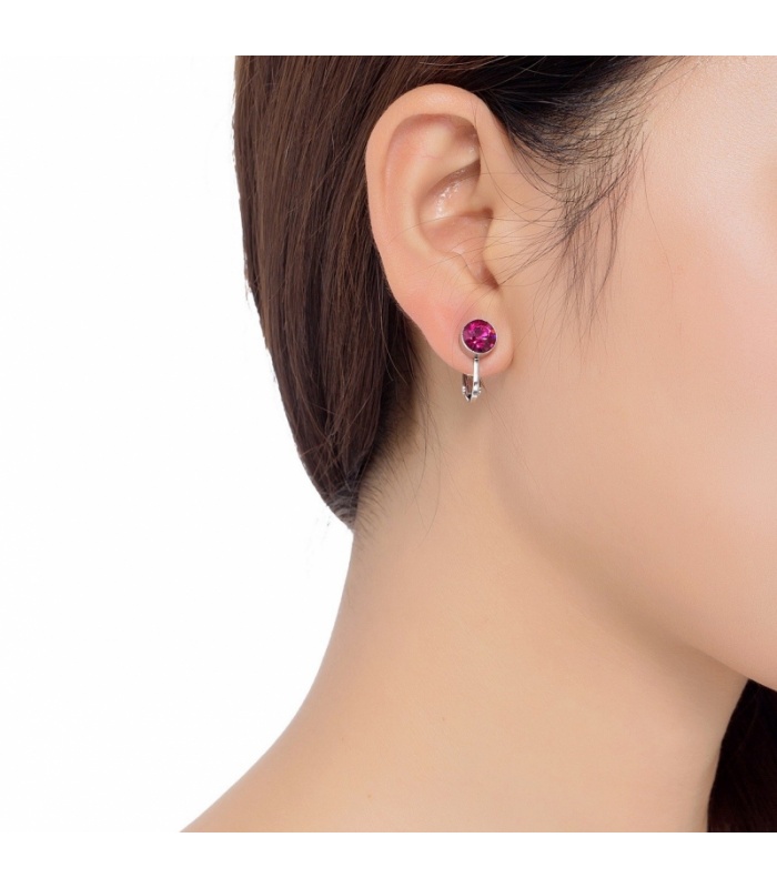 Zilverkleurige oorclips met fuchsia roze strass steen