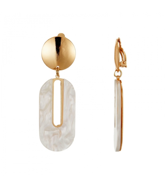 Goudkleurige langwerpige oorclips met witte gemarmerde inleg van Belle Miss