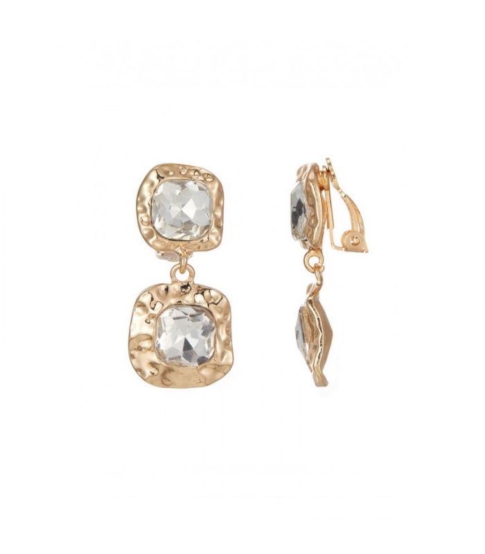 Deze goudkleurige oorclips met twee heldere kristallen steentjes voegen een vleugje glamour toe aan elke outfit. De subtiele glans van het goud en de sprankeling van de kristallen maken ze perfect voor zowel dagelijkse outfits als chique avondkleding. Hun klassieke ontwerp zorgt ervoor dat ze nooit uit de mode raken.