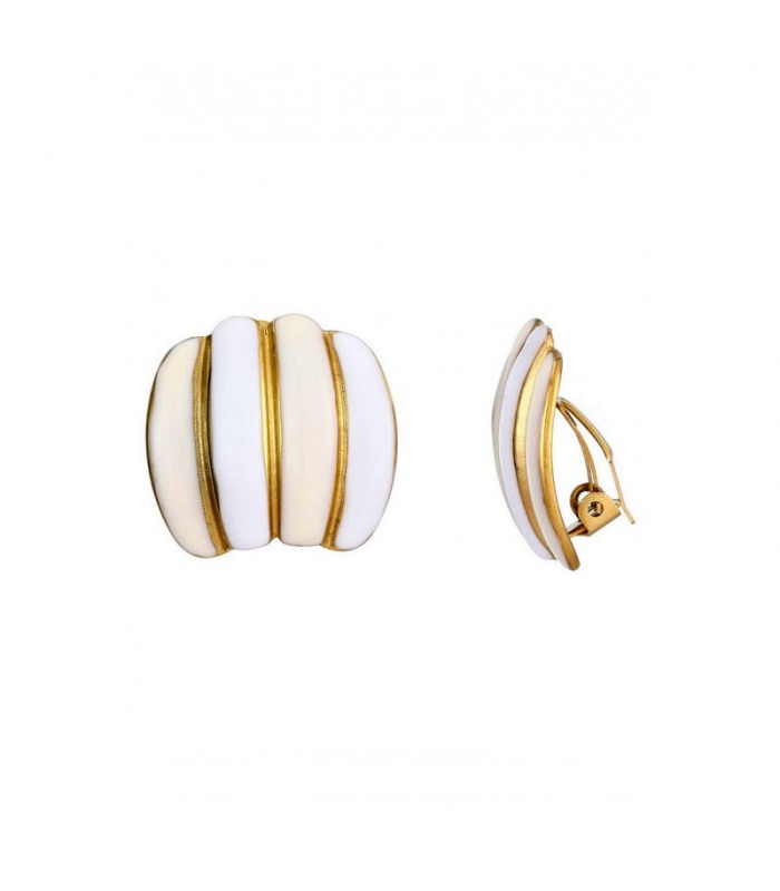 Wit met goudkleurige strepen oorclips geven je outfit een elegante uitstraling. Luxe sieraden met fashion flair. Oorbel comfort zonder gaatjes.