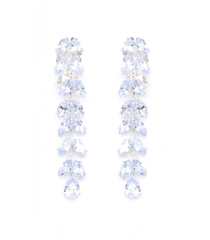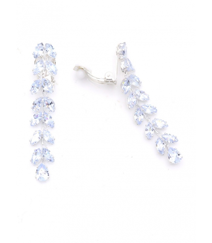 Oorclips met heldere blauwe kristallen in bladvormige zetting.