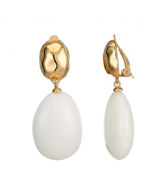 De clip sluit stevig en comfortabel, ideaal voor wie geen gaatjes heeft. De witte kunststof druppel contrasteert subtiel met het warme goudkleurige metaal. Perfect voor zowel een bruiloft als een casual chic look.