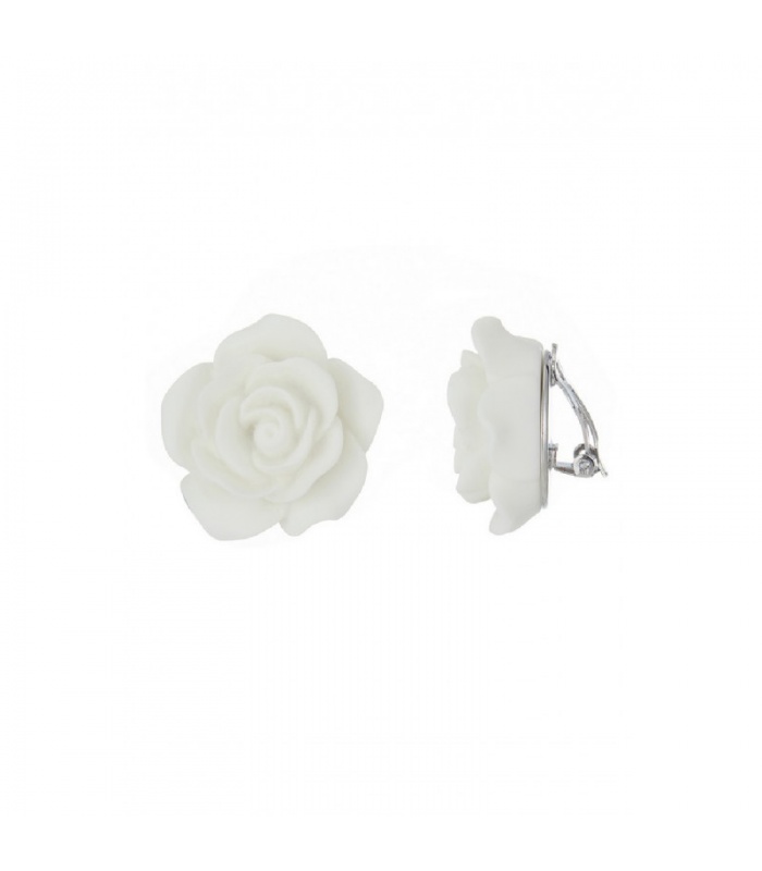Witte grote oorclips in de vorm van een roos