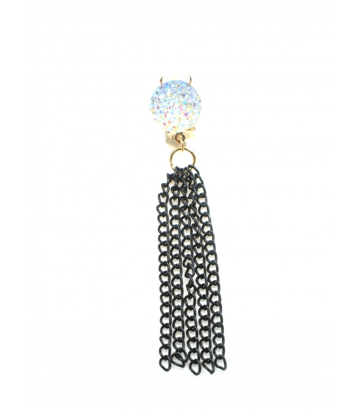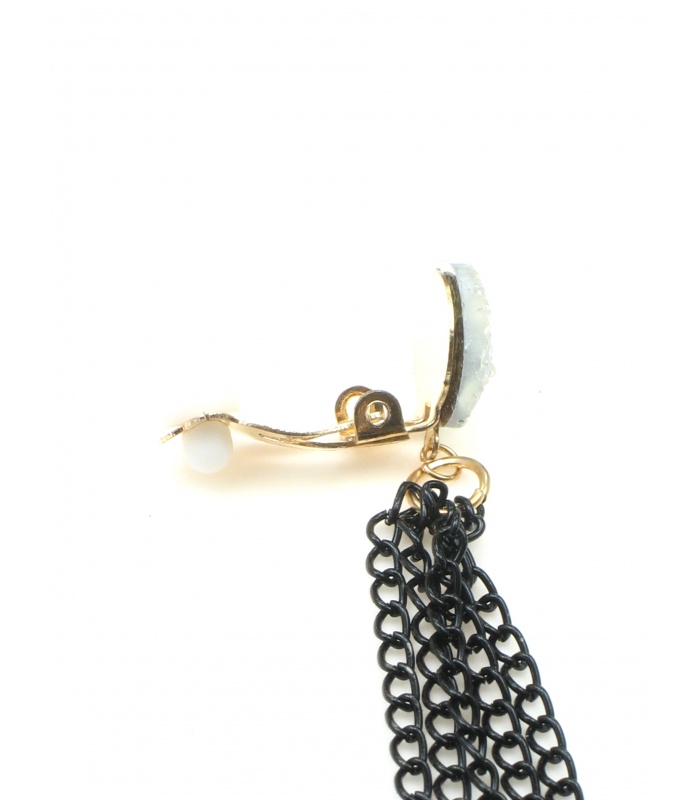 Witte langwerpige oorclips met 5 zwarte jasseron strengen