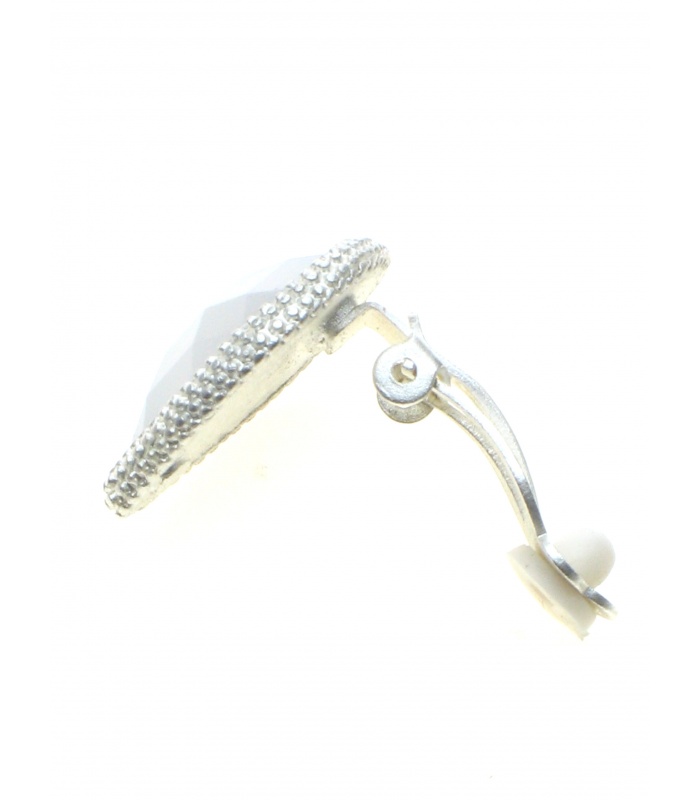 Witte oorclips  met een zilverkleurige rand.