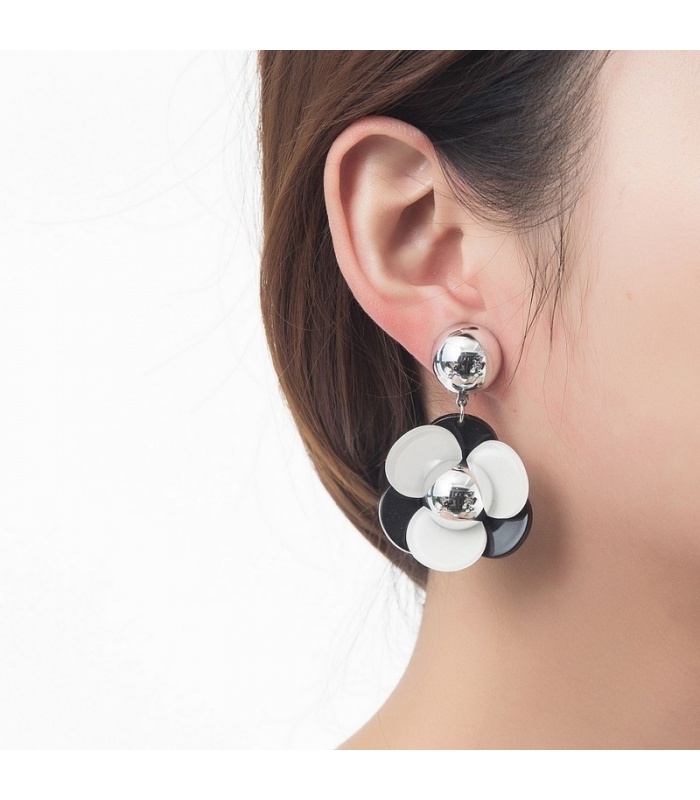 Zwart met witte bloemvormige oorclips...