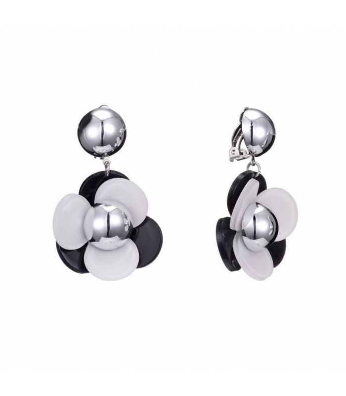 Zwart met witte bloemvormige oorclips van Belle Miss.