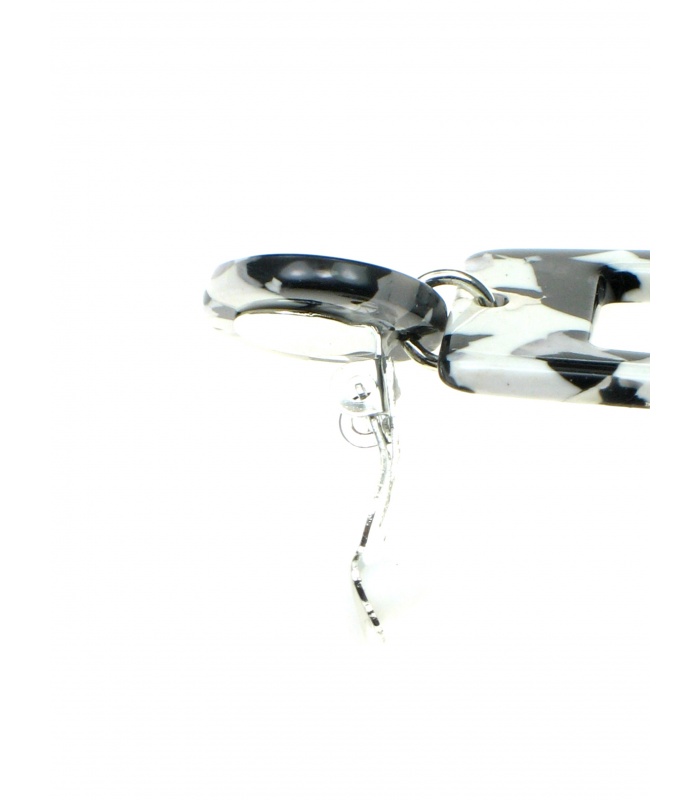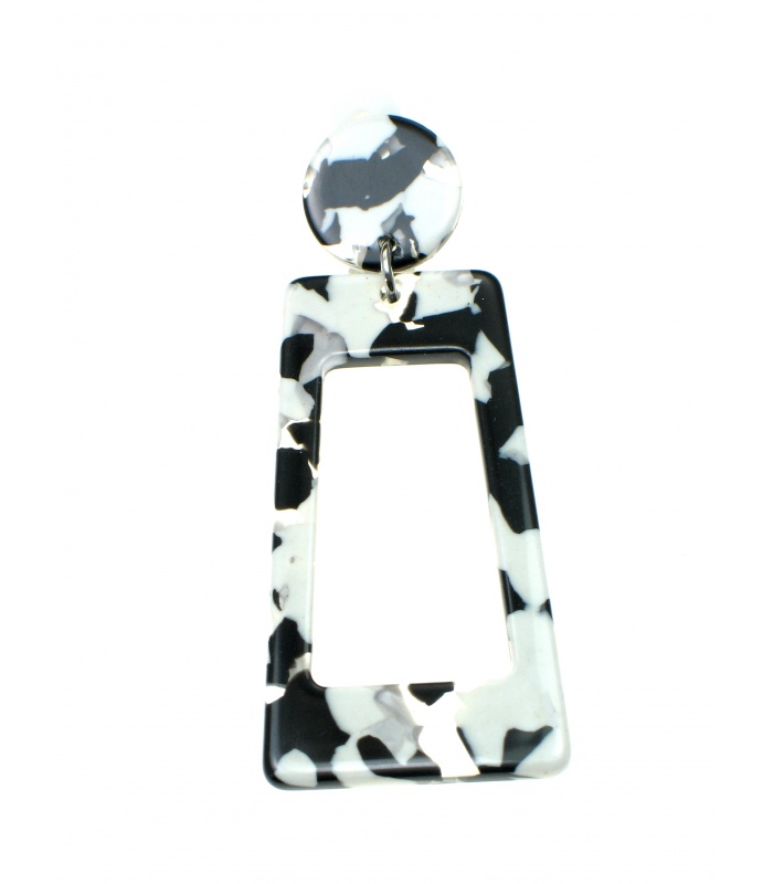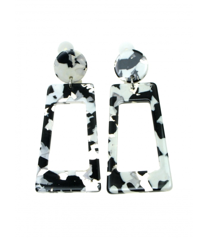 Zwarte witte langwerpige rechthoekige dunne acrylaat oorclips.