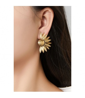 Oorclips met bloemvorm en zwarte rubber franjes. De lengte van deze oorclip is circa 10 cm. Voor oren zonder gaatjes. De klemoorbellen zijn nikkelvrij. De oorclips zijn voorzien van zachte rubbertjes.